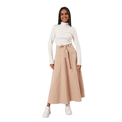 Jupe mi-longue en simili cuir offrant une coupe élégante et moderne.